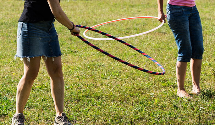 Wer viel Platz hat, kann einen Fintnessbereich einrichten, wo die eigene körperliche Verfassung getestet werden kann. Im Sommer auch draußen auf der Straße, wie früher. Mit Hula Hoop Reifen, Hüpfball, Gummitwistbändern und dem Hüpfspiel Himmel und Hölle. Wenn einige Kindsköpfe unter den Gästen sind, ist das der Renner auf Eurer 80er Mottoparty und der Spaß ist vorprogrammiert. Auch ein kleiner Tisch mit 80er Jahre Spielzeug wie Jojo, Zauberwürfel und Co. kann zur Bespaßung beitragen. Mal sehen, wer es noch drauf hat.